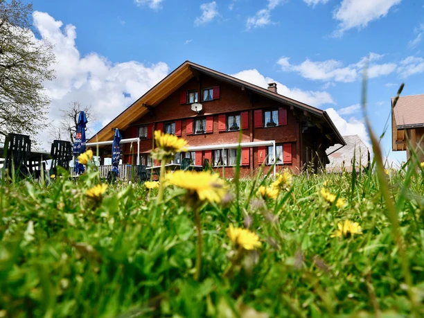Mitten im Wandergebiet können Gäste auf der grosszügigen Sonnenterrasse mit 80 Plätzen regionale Köstlichkeiten geniessen. Die Gaststube bietet 28 Plätze, das Ofenstübli 10 Plätze, das Gadestübli 18 Plätze und auf der Laube hat es 16 Plätze.