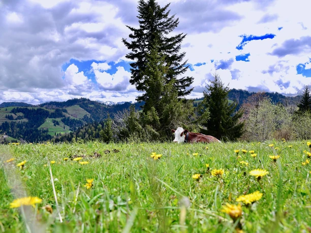 Die wunderschöne Panoramaaussicht übers Emmental auf die Berner Alpen ist unbeschreiblich - und das in allen vier Jahreszeiten.