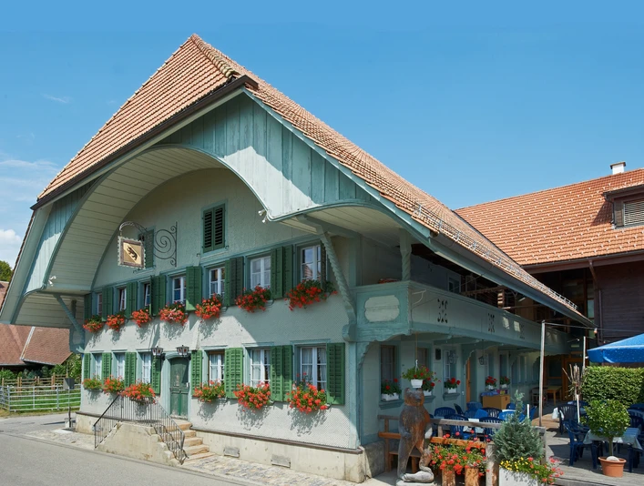 Die sieben neu renovierten Zimmer mit Dusche/WC und ein Zimmer mit Waschbecken und Etagendusche/WC laden zum Verweilen ein. Sämtliche Zimmer sind mit Gratis WLAN und Radio/TV ausgestattet. Baumhaus Ein besonderes Schlaferlebnis «fast» unter freiem Himmel bietet übernachten im Traum-Baumhaus. Restaurant Der schmucke Gasthof Bären in Ranflüh bietet für alle etwas. Lassen Sie sich im reizvollen historischen, für das Emmental typischen Gebäude von feiner gehobener Schweizer Küche verwöhnen und entspannen Sie in den wärmeren Monaten auf der Terrasse mit Panoramablick auf die grünen Hügel.