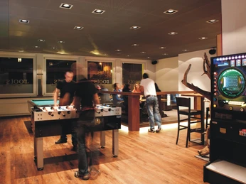 Ein Billardtisch, ein Tischfussballkasten und ein Dartkasten runden das sportliche Angebot des roots ab.