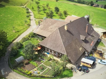 Der Bauernhof Nyffeler ist ein Familienbetrieb und bewirtschaftet 17 ha Land und 3 ha Wald. Die Familie Nyffeler bewirtschaftet zudem auch ca. 2.5 ha Ricola Kräuter. Auf dem Bauernhof leben Mutterkühe, Mastschweine, Freibergerpferde, Katzen, Hund, Zwergziegen und Kaninchen. Die Pferde werden noch in der Landwirtschaft eingesetzt. Sei es im Sommer beim Heuen oder im Herbst zum Säen und natürlih in der Freizeit zum Reiten. Sie leben in der Grupe in einem Offenstall friedlich beieinander.
