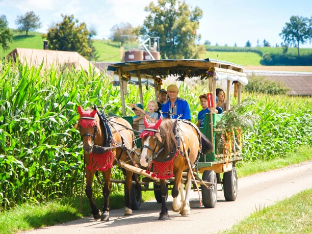 Die Familie Nyffeler bietet auch Rösslifahrten durch das schöne Emmental für Gruppen, Familie und Hochzeiten an. Preis auf Anfrage.