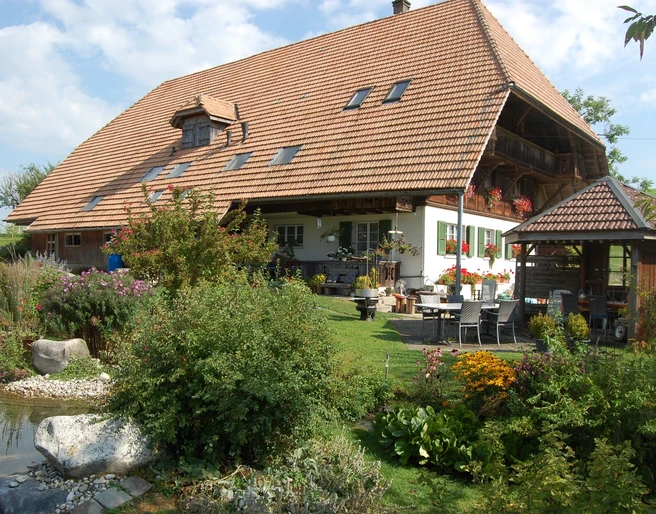 Das kleine, vielseitige Heimetli liegt etwas ausserhalb des Dorfes Weier im Emmental auf 800 M.ü.M. Mutterkühe, Schweine, Hühner, Laufenten und zwei Kaninchen wohnen auf dem Hof. Der Bauernhof befindet sich in guter Reichweite zu Burgdorf, Langnau und Langenthal. Durch seine ruhige Lage und schöne Aussicht ist er ideal geeignet für Erholungssuchende.