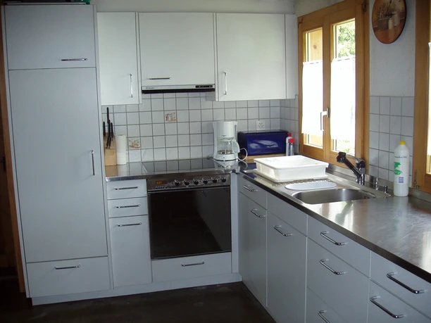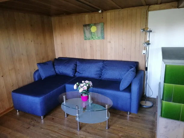In den 3 Schlafzimmern befinden sich insgesamt 5 Betten und 1 Kinderbett. Im Wohnzimmer mit Tisch und Sofaecke bietet ein Kachelofen gemütliche Wärme. In der gut eingerichteten Küche mit Elektroherd, Backofen und eingebautem Kühlschrank kann auf Wunsch auch auf dem Holzherd gekocht werden.