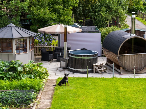 Im Garten steht ein Grillhaus mit Lounge für gemütliche Stunden. Auch ein Hotpot und eine Sauna stehen unseren Gästen nach Voranmeldung zur Verfügung. Frisches Brot oder den Sonntagszopf sowie das Ei von den glücklichen Hühner lassen Sie wohlgenährt in den neuen Tag starten.