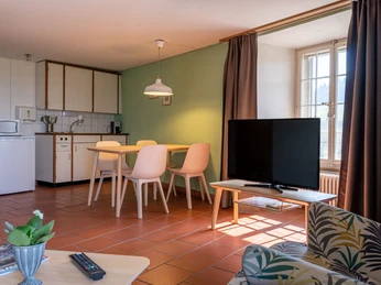- Aufenthaltsraum inkl. Küche, Esstisch, Sitzecke und TV (Verfügbarkeit nicht garantiert)