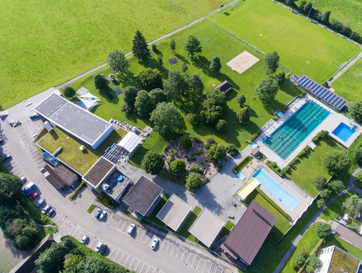 Parkplätze sind vorhanden. Bei der Anreise mit den öffentlichen Verkehrsmitteln fahren Sie mit dem Bus bis zur Bushaltestelle «Schwimmbad Moos».