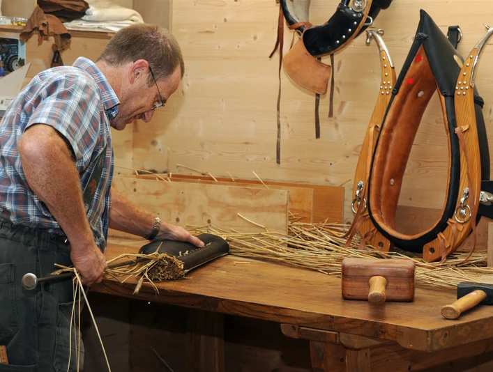 Erhalten Sie einen Einblick in ein altes, traditionelles Handwerk. Bei einem Rundgang durch die Werkstatt und die Ausstellungsräume der Sattlerei Blaser lernen Sie die Vielfalt des Sattlerhandwerks kennen. Familie Blaser zeigt Ihnen wie ein «Kummetleib» entsteht und wie Glockenriemen bestickt und verziert werden.