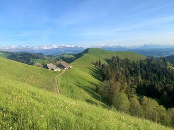 - Von der Lüderenalp führt eine herrliche Wanderung hoch über der Hügel- und Waldlandschaft des Emmentals auf schmalen Pfaden mehrheitlich dem Grat entlang ostwärts zum Napf, einem weiteren beliebten Ausflugsziel.