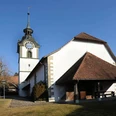 Die Kirche prägt mit ihrem spitzen Turm das Dorfbild. Der Innenraum ist von monumentaler Weite und mit reichen Stuckaturen und frischen Deckenfresken von Anton Bütler geschmückt. Die wunderbaren Stuckmarmorarbeiten der Altäre und der Kanzel, wie auch die Altargemälde von Johann Bucher und die barocken Figuren unterstreichen das festliche Gepräge des Kirchenraums.
