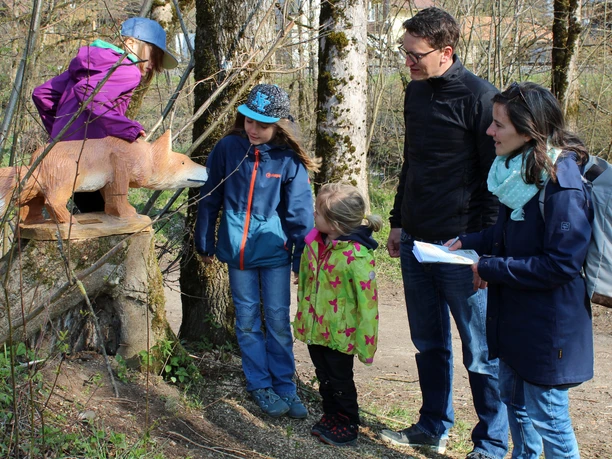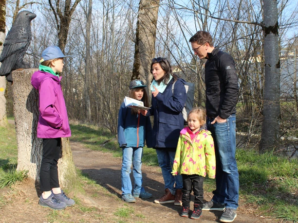 Auf dem 6 Kilometer langen Spazierweg dem Fluss Ilfis entlang geben Holztiere immer wieder wichtige Hinweise zu den Nussverstecken. Dabei gilt es, anhand kleiner Aufgaben und Rätsel das richtige Lösungswort und den Geheimcode herauszufinden.