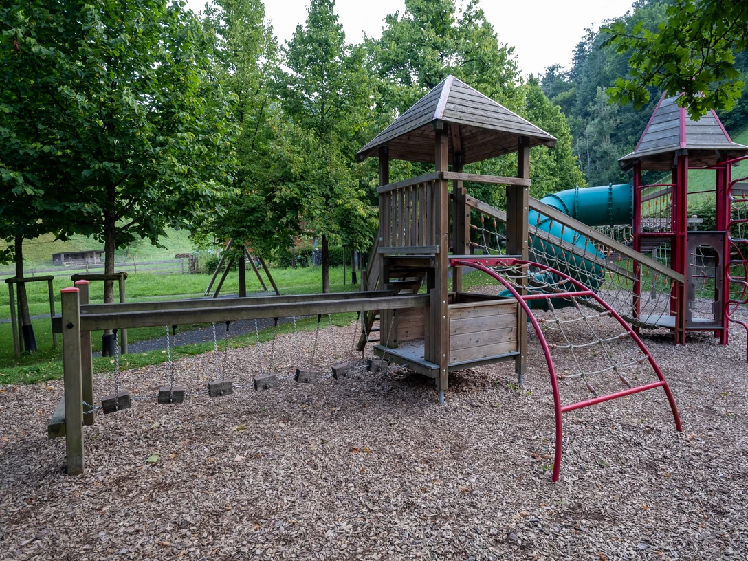 Wippen, Schaukeln, Kletterburg mit Rutschbahn, Sandkasten mit Spielzeugen und Bächlein zum Spielen, Skilift zum Festhalten und Runtersausen dies und andere Attraktionen findet man im Äntelipark in Langnau.