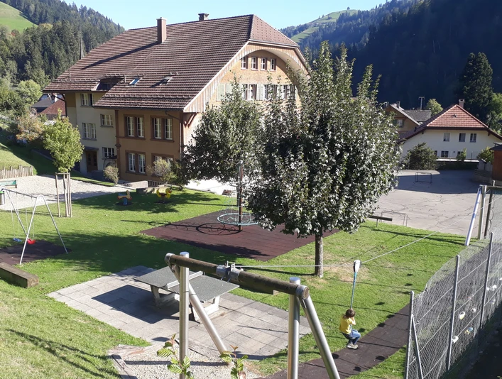 Zusammen mit Schulleiter Walter Guggisberg haben die Neuntklässler von Trubschachen beim Dorfschulhaus eine schöne Brätlistelle geschaffen. Der Grill steht auf einem Bödeli, Brennholz hats beim Schulhaus. Dort kann auch das WC benutzt werden. Bei der Brätlistelle gibt es verschiedene Sitzgelegenheiten, jedoch keinen Tisch. Dafür freuen sich die Kinder über wunderbare Spielgeräte wie Kletterbaum, Seilbahn, Rittiplampi und Rutschbahn. Ebenfalls empfehlenswert ist der Kambly-Entdeckerpfad, der an der Brätlistelle vorbeiführt.