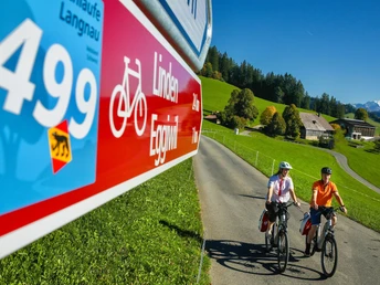 Entlang der Emme gehts nach Lützelflüh und dann auf der 699 nach Sumiswald. Das Dorf verzaubert mit einem fast 300-jährigen Schloss. Danach wartet das Schloss Trachselwald auf und bald erklimmen wir die Lüderenalp auf der Herzschlaufe Napf mit der Nummer 399. Am höchsten Punkt der Tour geniessen wir die Aussicht und gleiten danach zurück nach Langnau.